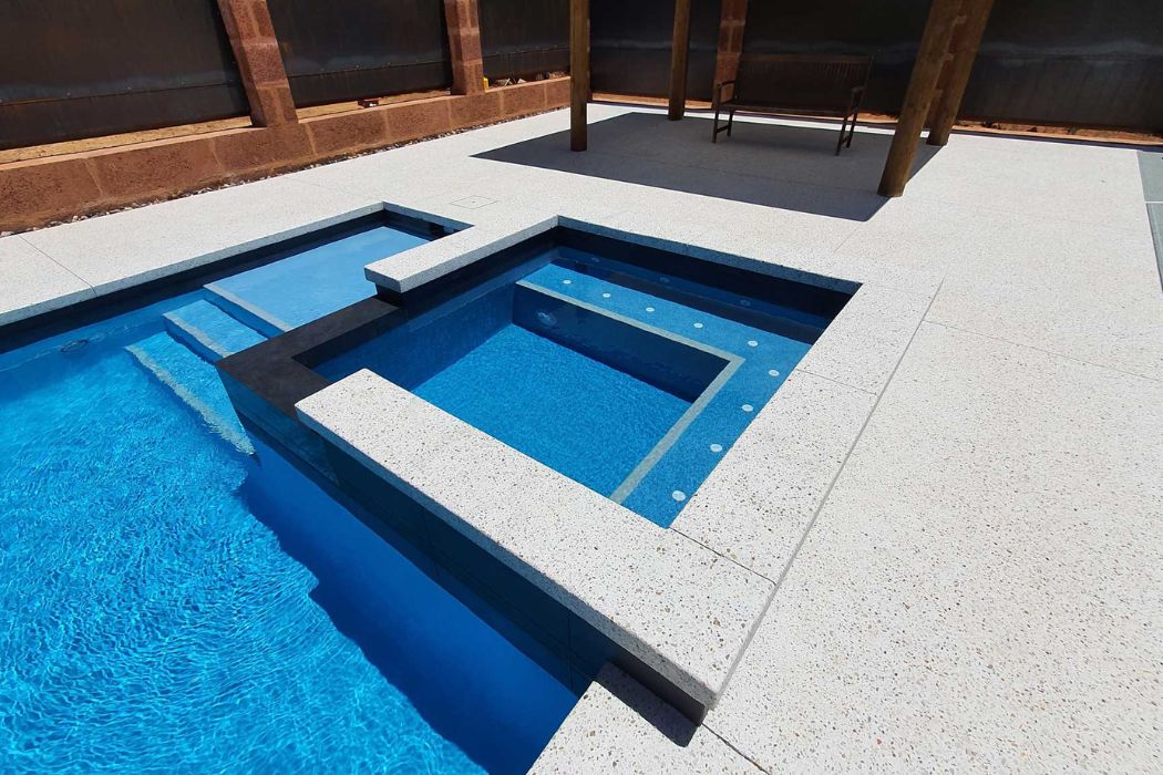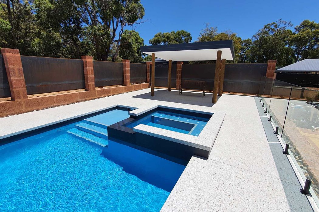 When peak Summer hits in the Perth hills what better way to cool off that with a big pool and spa combo like this!! The owners wanted a large family pool that would keep the family cool in Summer and they also added a heated spa for keeping warm while stargazing on clear winters nights The pool is finished in Aqwaglass Arctic Mist and the spa is finished with super tactile glass bead. The pool and spa is fully automated with an Astral saltwater chlorinator, Connect 10 automations system and 19 kilowatt heat pump