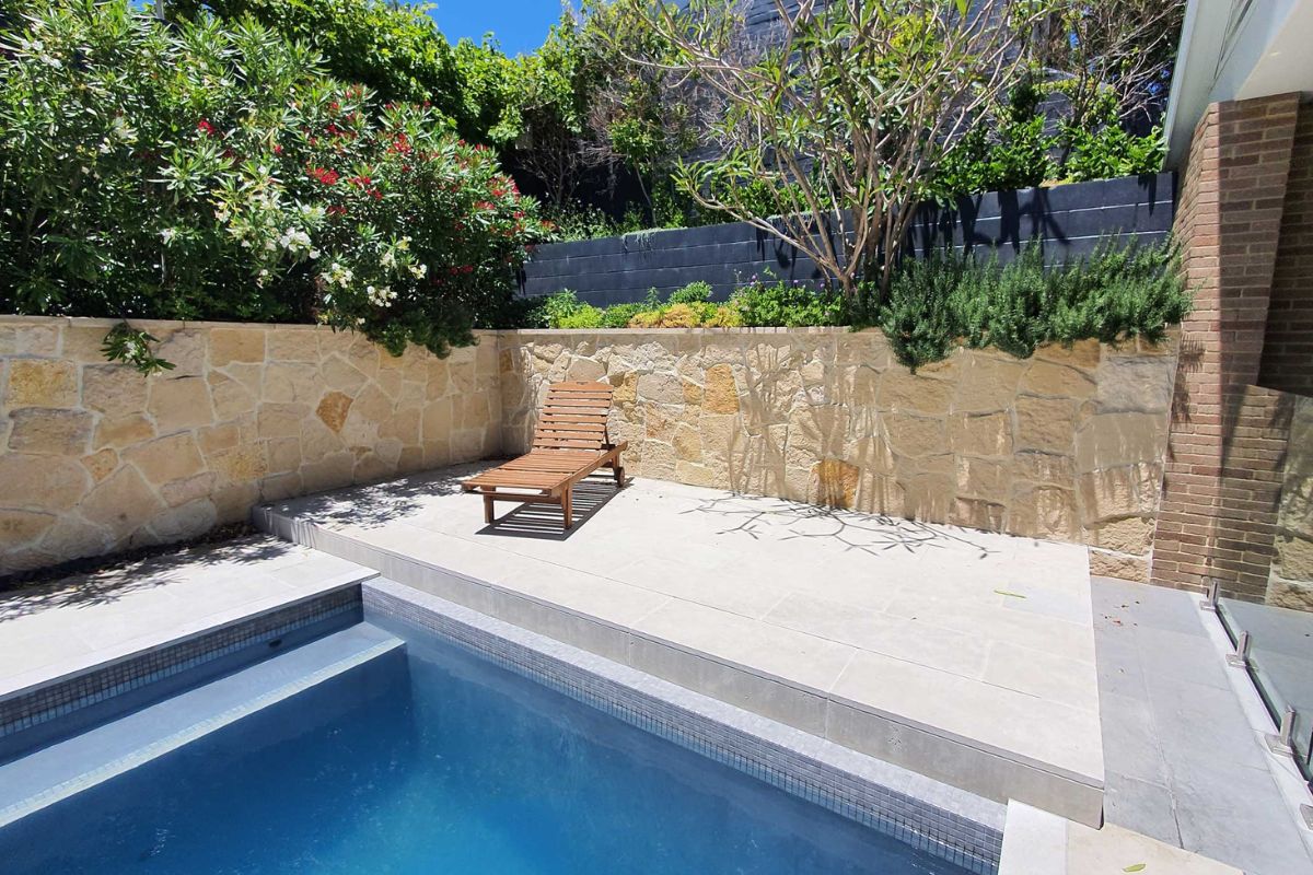 This partially above ground pool was designed to work with this very steep block in North beach.